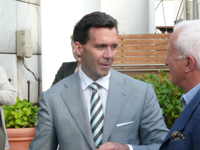 Christopher Norton DG de l’hôtel Georges V Four Seasons tout proche de Maison Blanche conversant avec le propriétaire du magazine » 3 Étoiles «