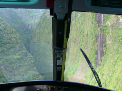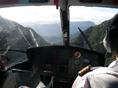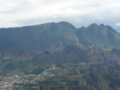 C’est impressionnant de descendre dans les cirques creusés par l’érosion ou de survoler les volcans, notamment le Piton de la Fournaise. Malheureusement ce jour là le mauvais temps au dessus des volcans ne nous a pas permis de les survoler.