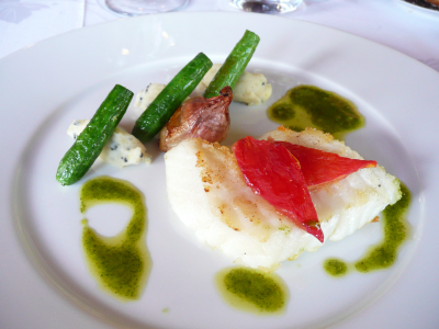Pavé de légine poêlé, Mousseline de patate douce truffée, sauce à l’écorce de Combawa