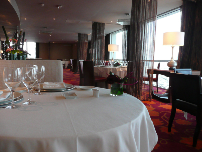 Arrêtons nous au 27 éme étage, justement celui là au l’on retrouve le restaurant » Sens » signature des frères Pourcel, enfin pour faire plus simple notre restaurant panoramique. Une adresse qui fait son chemin parmi la clientèle raffinée de la ville, à tels points que le restaurant remplie sa salle tous les soirs.