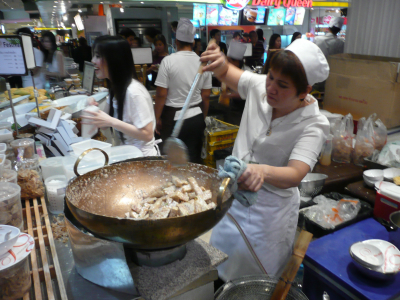 L’esprit de ces petits restaurants, on peux les retrouver à Bangkok dans le très populaire Siam Paragon, ce grand centre commercial pharaonique qui sur de nombreux étages propose les grandes enseignes à la mode. Tout un niveau est réservé à la nourriture, c’est l’étage le plus impressionnant, les techniques de la cuisine Thaï y sont représenté, je peux m’y balader des heures et être captivé par tout ce qui se passe dans ce lieu.