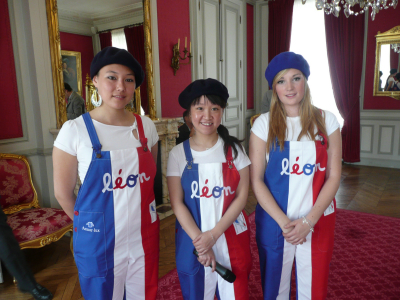 Les Hôtesses, déguisées en tenue de la Mascotte du Pavillon Français » Léon « .