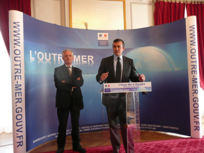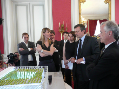 Organisé par le Ministre Yves Jégo, cette réception a eu lieu dans les salon au 1er étage du Ministère pour la conférence de presse et la présentation de la maquette du Pavillon, avant de se terminer dans l’immense jardin entouré des bâtiments qui regroupent tous les services du Ministère.