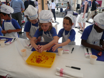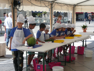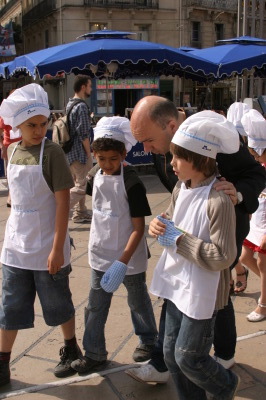 Les Marmitons de Vincent réalisant la recettes de Vincent Valat
