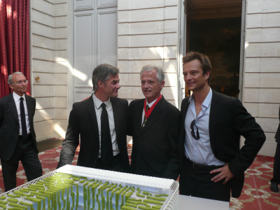 Réception donc dans les Salons du Palais de l’Élysée où la maquette du bâtiment du Pavillon Français crée par l’architecte Jacques Ferrier attendait tous les invités autour de José Frèches le truculent Président de la COFRES.