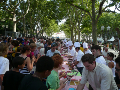 L’idée : réunir au centre ville 100 chefs de la ville qui serviraient chacun un gâteau d’anniversaire pour vingt personnes, soit 2000 portions de gâteaux pour régaler les Montpellierrains !