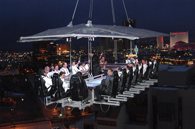 Après Budapest, Bruxelles, Dubaï, Londres et Las Vegas, c’est donc Paris qui reçois au Jardin des Tuileries la nacelle » table » suspendue dans les airs, où assis et attachés sur des sièges qui ressemblent à ceux de voitures de courses, vous allez déguster un dîner cuisiné par une Grand chef !