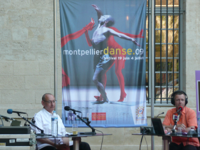Tous les jours pendant la période du Festival de Montpellier Danse, France Culture avait pris possession de la terrasse du restaurant l’Insensé sur le parvis du Musée Fabre pour y animer ces directs tous les soir pour faire un compte rendu sur la journée du Festival.