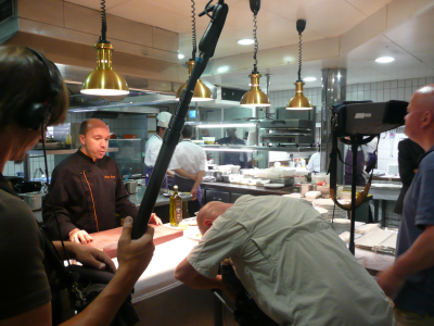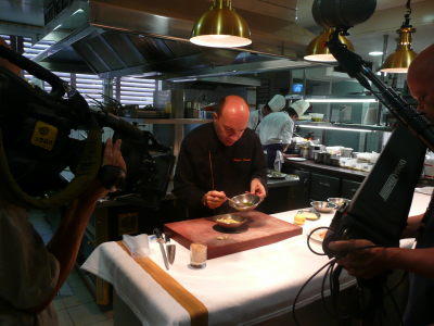 L’équipe de la Radio Télévision Belge Flamande ( RTBF ) dans les cuisines du Jardin des Sens