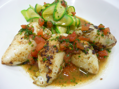 En tous cas, les Frères Pourcel et le Jardin des Sens furent à l’honneur sur deux chaînes de Télévision. Le matin RTBF la chaîne Nationale Belge qui réalisa un très beau reportage sur l’établissement et les chefs, avec la préparation d’une recette régionale re visitée « Les petits encornets farcis de langoustines «.