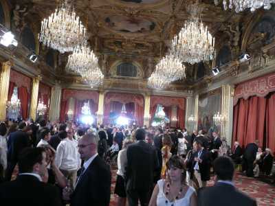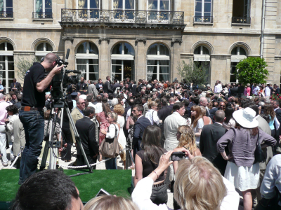 Nous entrons par l’entrée des artistes avant de pénétrer dans la cours de l’Élysée pour rejoindre les Grands salons où nous étions quelques jours avant pour célébrer la remise de l’Ordre du Mérite à José Frèches et la Présentation du » Pavillon France » pour l’Exposition universelle de Shanghai 2010.