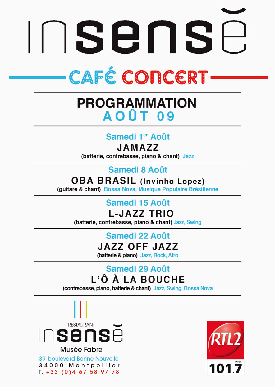 Soirée Jazz tous le mois d’août à Insensé…. au restaurant du Musée Fabre !