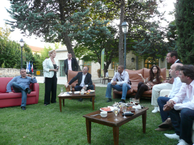 Donc mardi soir dernier, les cinq chefs et l’artisan boulanger se sont retrouvé au Domaine Municipal de la Pompignagne pour un dîner convivial autour du Maire de Montpellier. Des grands sofas avaient été installé dans le Parc du Domaine, et les tables sur la grande terrasse, l’occasion de profiter de cette très belle soirée d’été.