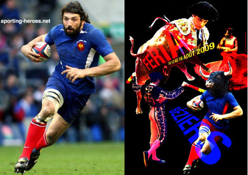 Un montage montrant l’affiche Officielle de la Féria et la photo du Rugbymen S. Chabal utilisé.