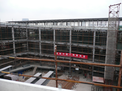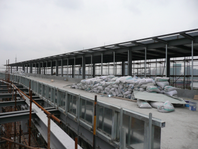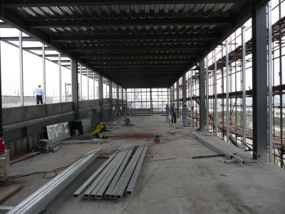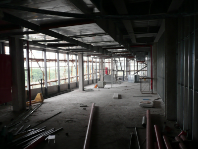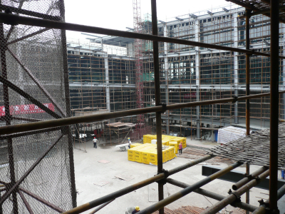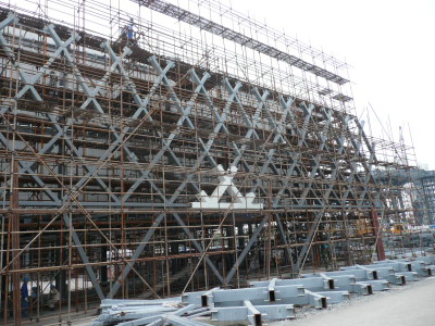 L’extérieur du Pavillon France sera habillé d’une résine en croisillon, elle habillera une armature en acier qui est pratiquement finie d’installée.