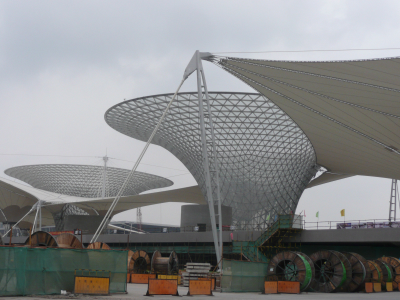 L’arrivée sur le site de l’Exposition est déjà surprenant, un grand chantier à ciel ouvert qui fonctionne 24/24 heures, une activité très intense, on sent que les six dernier mois de travaux approchent, l’ouverture officielle devant avoir lieu le 1 mai 2010.
