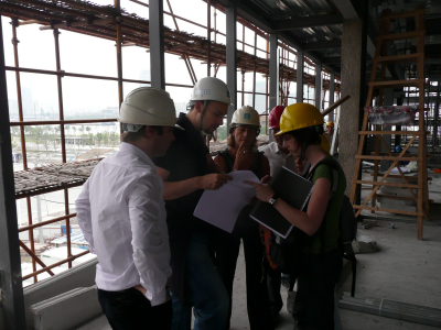 Je retrouve sur place Marie Lamy responsable du projet, Gille Bihi-Zhénou notre partenaire sur place qui coordonne l’opération, Valentine Sorret notre Event Manager, Franck Seranno réprésentant de la Cofres sur place, et trois personnes du Cabinet d’architecte Jacques Ferrier.