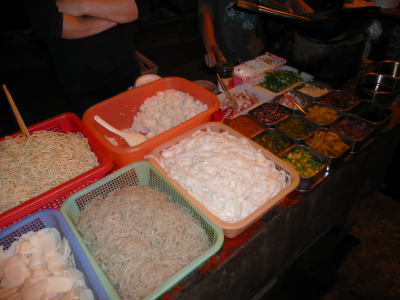 j’ai découvert pour vous deux très bons restaurants de rue, chacun ne dispose que de 4 tables, mais la cuisine chinoise traditionnelle et familiale y est remarquable, ces adresses ne sont connue que des initiés…. Alors Chutttt, ne divulguez pas trop ! Quant au prix, je n’ose même pas vous le dire…. disons le prix d’un paquet de cigarette en france !