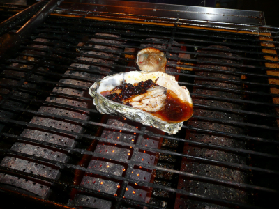 Nettoyage et ouverture des huîtres locales à même la rue.