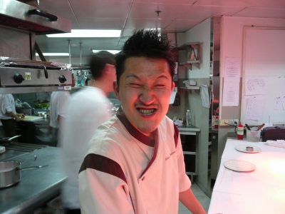Un Chef japonais qui fait des grimaces …… vous aviez déjà vu ça ? moi pas !