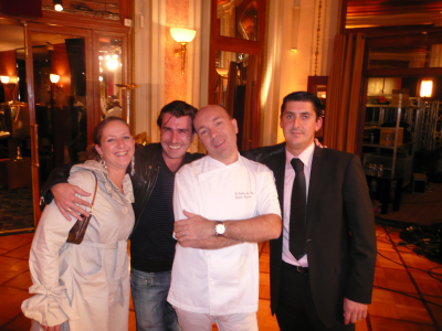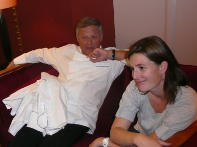 En fin de tournage, le Chef George Blanc et Laure De Carrière, tous deux épuisés par cette longue journée !