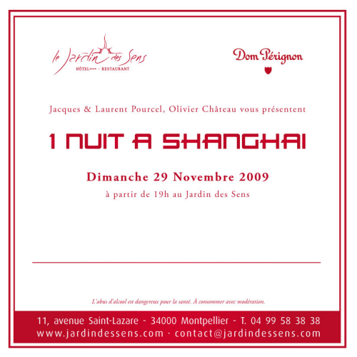 La fameuse soirée » Dom Pérignon » annuelle aura lieu cette année au Jardin des Sens le 29 novembre 2009, une soirée qui s’annonce comme chaque année la plus belle fête de la ville avant celles de fin d’année.