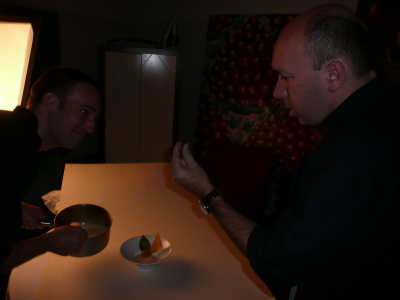 Avec le Chef Christophe Lerouy dans le noir de la pièce photo !