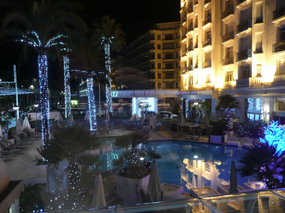 Cannes et les terrasses de l’Hôtel Martinez sur la Croisette, déjà en habits de Fêtes.