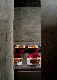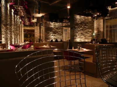 Situé dans la nouvelle ville bordant la médina, le restaurant a été designé par Christophe Pillet, émule de Philippe Stark qui, depuis plusieurs années a marqué de son empreinte le milieu du mobilier contemporain.