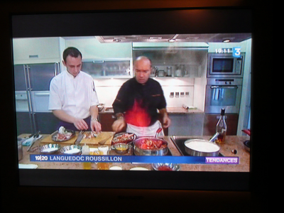 Spécialement pour la région Languedoc Roussillon, Jacques Pourcel s’est mis en cuisine la Veille de Noël pour préparer devant les caméra de France 3 » un Homard Breton aux salsifis et caramel d’orange « .