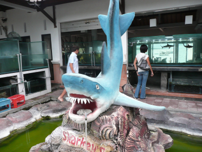 Dès l’entrée, on aperçoit les requins dans les aquariums….