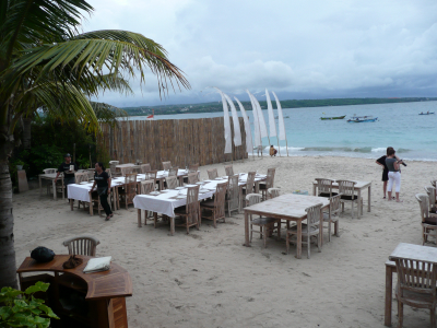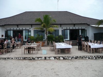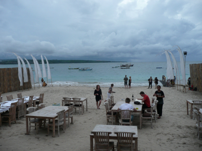 Toujours sur Jimbaran Bay, jouxtant le marché au poissons dont je vous ai parlé hier, vous pourrez vous poser au restaurant SHARKYEYS, le seul restaurant qui soit de qualité dans le quartier. Posés sur la plage depuis les tables, vous pourrez admirer la vue sur la baie et l’arrivée des bateaux au moment du coucher du soleil.