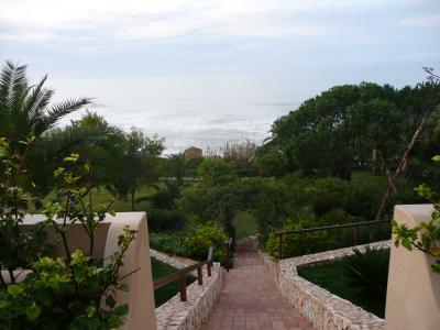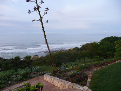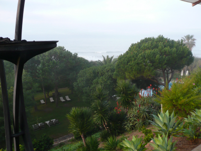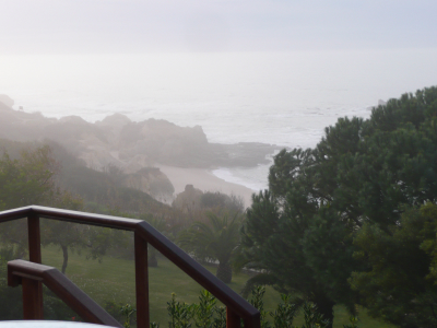 Ce matin, temps gris et pluvieux sur l’océan, ce qui n’empêche pas de trouver un climat très doux et un calme très reposant au bords de falaises que surplombe l’hôtel.