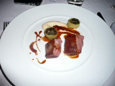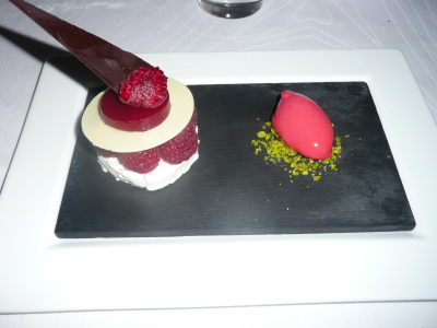 Pressé de foie gras et volaille, filet de Saint-Pierre aux truffes et gnocchis de châtaignes, filet de canette et jus aux dattes, mille-feuille vacherin aux framboises, tel fut le programme des festivités.