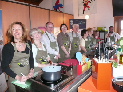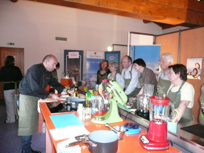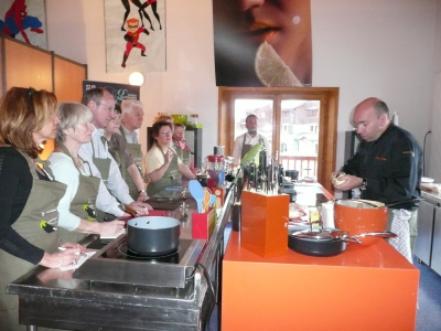 C’est en fin d’après-midi, au retour d’une journée bien chargée que Jacques Pourcel a rejoint le centre ville de Val d’Isère pour retrouver les cuisines installées à l’occasion du Festival « Les Pistes Gourmandes » proche de l’Office de Tourisme, pour donner un cours de cuisine pour des amateurs de bonne chair.