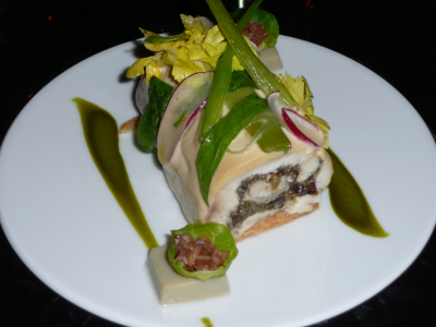 Chaud-froid d’omble chevalier du Lac Léman et huîtres en albuféra relevées de foin.