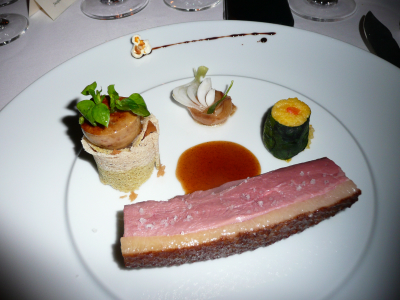 Magret et foie gras de canard parfumés à la mondeuse, polenta valdôtaine, rioute au navet acidulé à l’aigrö.