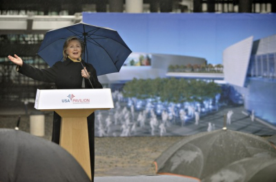 Hillary Clinton lors du lancement du Pavillon des États-Unis d’Amérique.