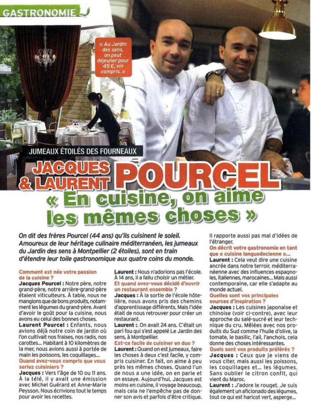 La presse en parle encore cette semaine, les frères Pourcel toujours au devant de la scène gastronomique, des recettes, des interviews, un regard d’expert, ils sont toujours là pour continuer à faire partager leur passion pour la cuisine.