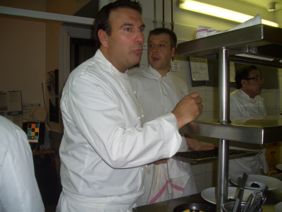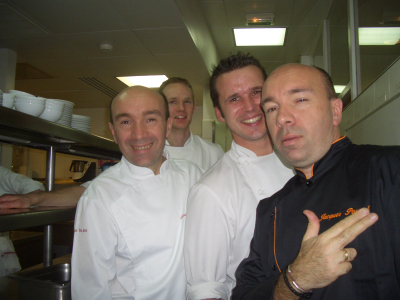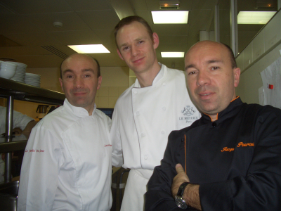 Au cours de cette soirée les Chefs Pourcel retrouvèrent trois anciens de leurs équipes. Ci-dessus, Florent Boivin maintenant Chef des cuisines de Michel Troisgros à Roanne et ci-dessous, Jean-Yves Bourno qui est un des seconds des cuisines de Yannick Alléno au Meurice à Paris. Et pour terminer, tout en bas de l’article : Benjamin Lechevalier, ancien de Maison Blanche et Sens à Paris, qui après un long parcours chez Hyatt, vient d’ouvrir son établissement en Normandie… soirée retrouvailles !