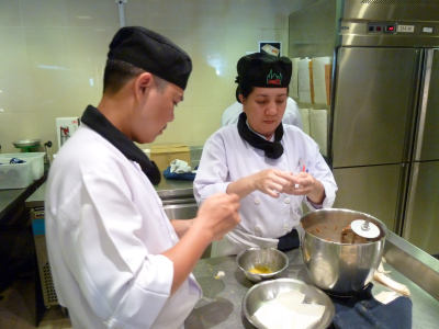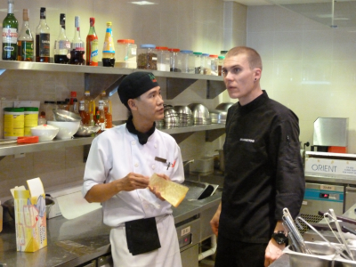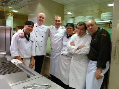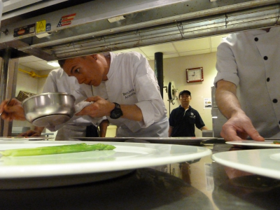 Ce sont dans les cuisines du restaurant panoramique que se sont retrouvés les chefs pour servir ces deux dîners accompagnés du chef exécutif australien de l’hôtel Ian Lovie. Toutes les équipes de salle et de cuisine furent mobilisées pour servir ces deux repas importants puisque de nombreux acteurs de la restauration et sommellerie de la ville étaient à table.