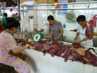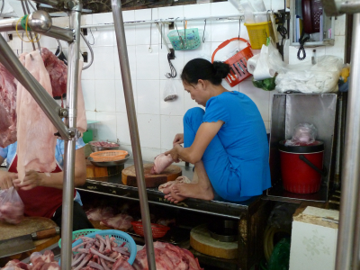 Une chose m’a marqué, ce sont les femmes qui tiennent les échoppes, contrairement à beaucoup d’autres pays, les hommes sont assez rares sur les marchés, même pour les métiers de boucherie.