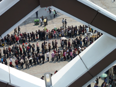 Longues files d’attente devant le Pavillon France durant ces trois jours de test et d’organisation du Parc des expositions.