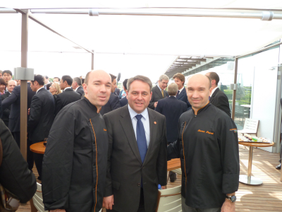 Le Président et son épouse ont fait le tour des équipes pour saluer tout le monde, ici avec les chefs Jacques et Laurent Pourcel.