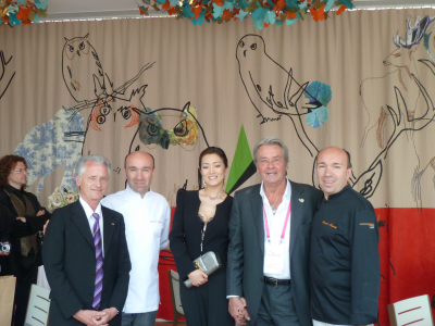 L’actrice internationale Gong Li, d’origine chinoise et égérie de l’Oréal en Asie, a passé une journée sur le Pavillon France. Elle était présente pour recevoir le Chef d’État français, pour déjeuner au restaurant 6Sens et recevoir des mains du Président de la COFRES la médaille des Arts et des Lettres.