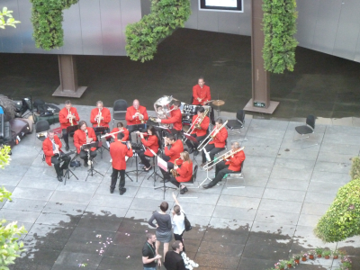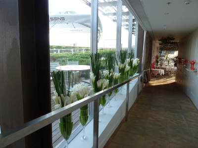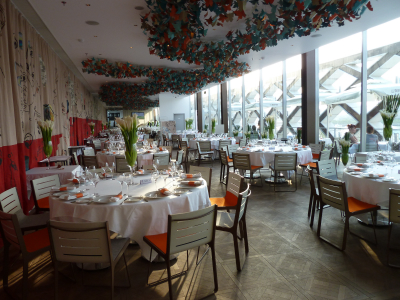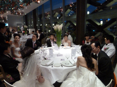 La salle de restaurant intérieure reçut donc les 40 couples pour un dîner traditionnel français, avec bisques de homard et noix de Saint-Jacques pour commencer, un filet de boeuf au foie gras et truffes pour suivre, et une déclinaison au citron. Manquait seulement la pièce montée pour finir en beauté cette journée.