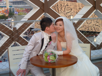 Ce sera un des événements les plus populaires du Pavillon France, » Les mariages romantiques « . En tout cas, le tout premier qui a eu lieu ce mardi a remué la foule et la presse, vu le nombre de photographes et de journalistes qui suivaient la manifestation.