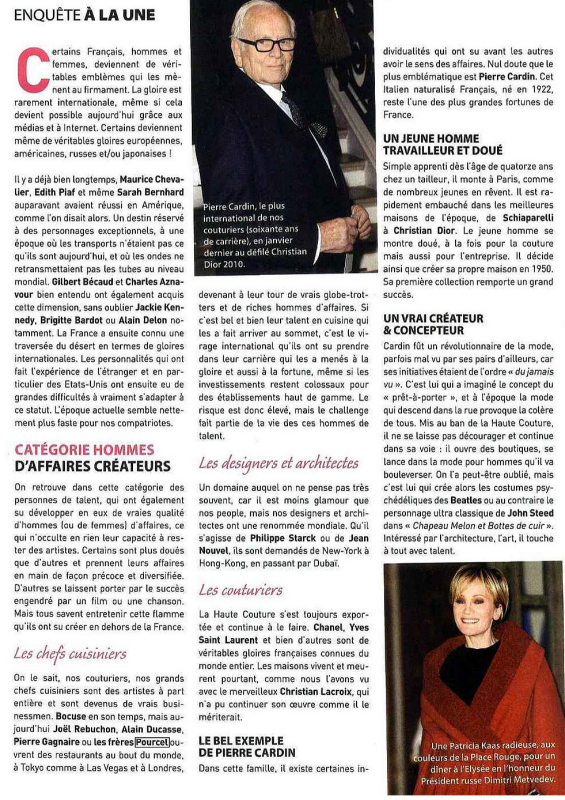 Dans la rubrique » Enquête à la Une » du magazine people » Célébrités Magazine « de cette semaine, un article est consacré aux réussites des stars françaises à l’étranger » Succès hors frontières « . Alors de catégories en catégories, de Alain Delon en passant par Pierre Cardin ou Marion Cotillard, on arrive forcément aux chefs de cuisine… Et l’on apprend des choses assez remarquables… croustillantes même… surtout lorsqu’il s’agit de nous !…