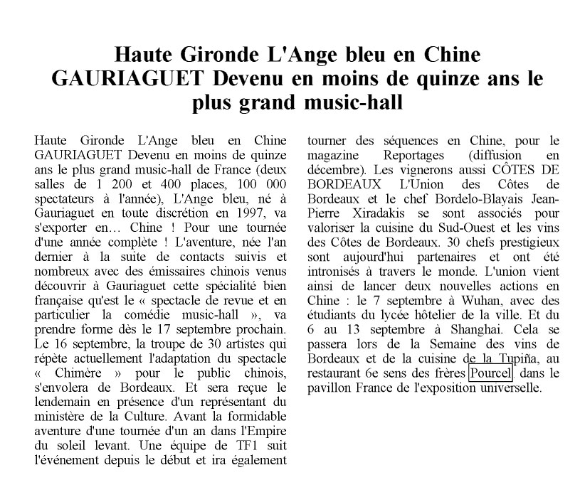 » La Tupina » et son Chef Jean-Pierre Xiradakis en Chine au pavillon France