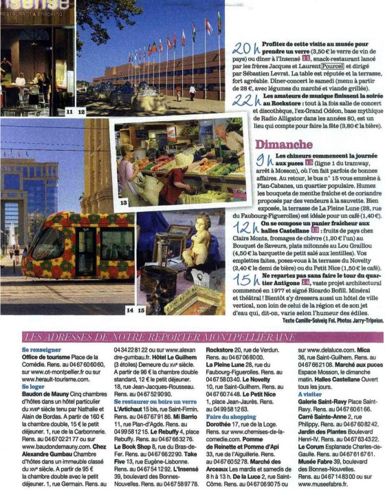 La presse en parle… Les bons plans pour passer 48h à Montpellier sur le magazine » Version Fémina « … Vous passerez forcément par la terrasse du restaurant Insensé des frères Pourcel, devenue une incontournable de la ville… surtout si l’on fait étape au Musée Fabre… Suivez le guide !